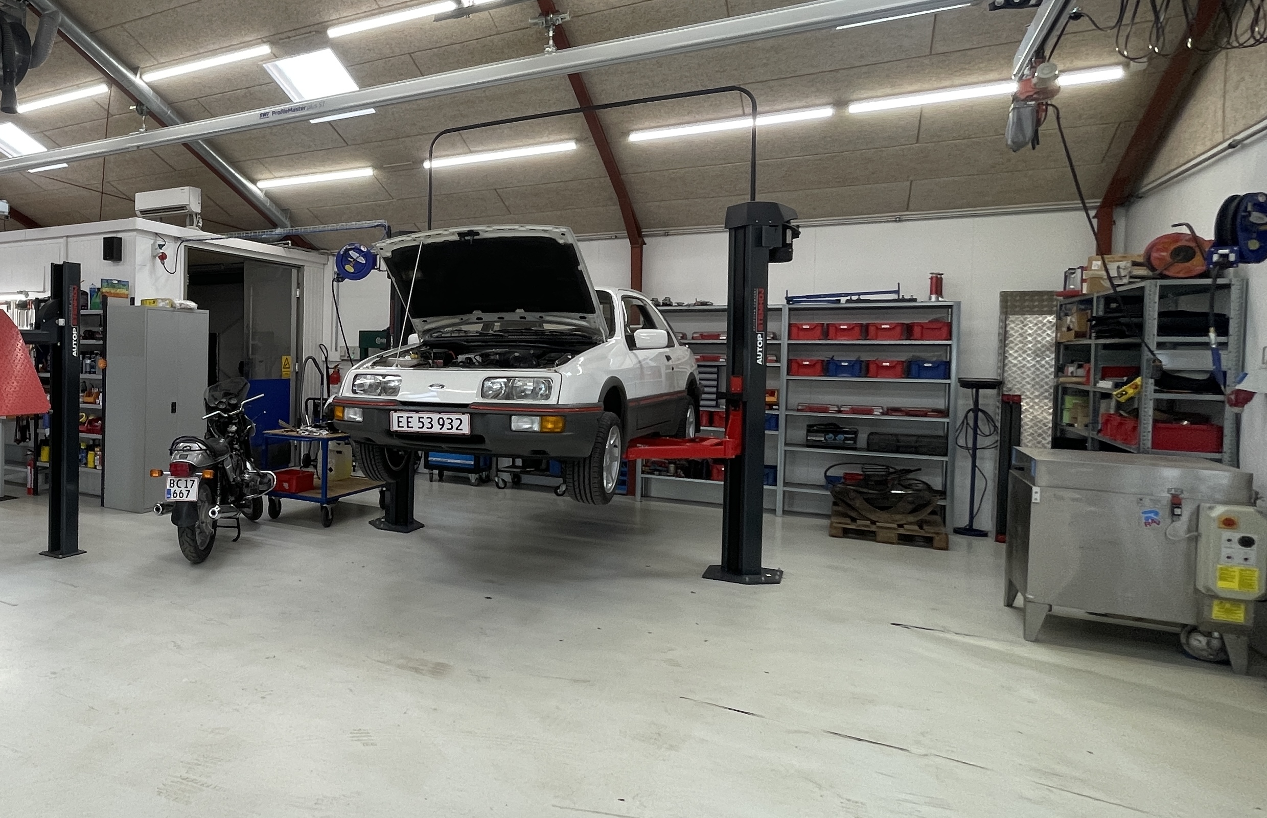 Der er mange forskellige biler, og på værkstedet kan man se de projekter, HP er i gang med.