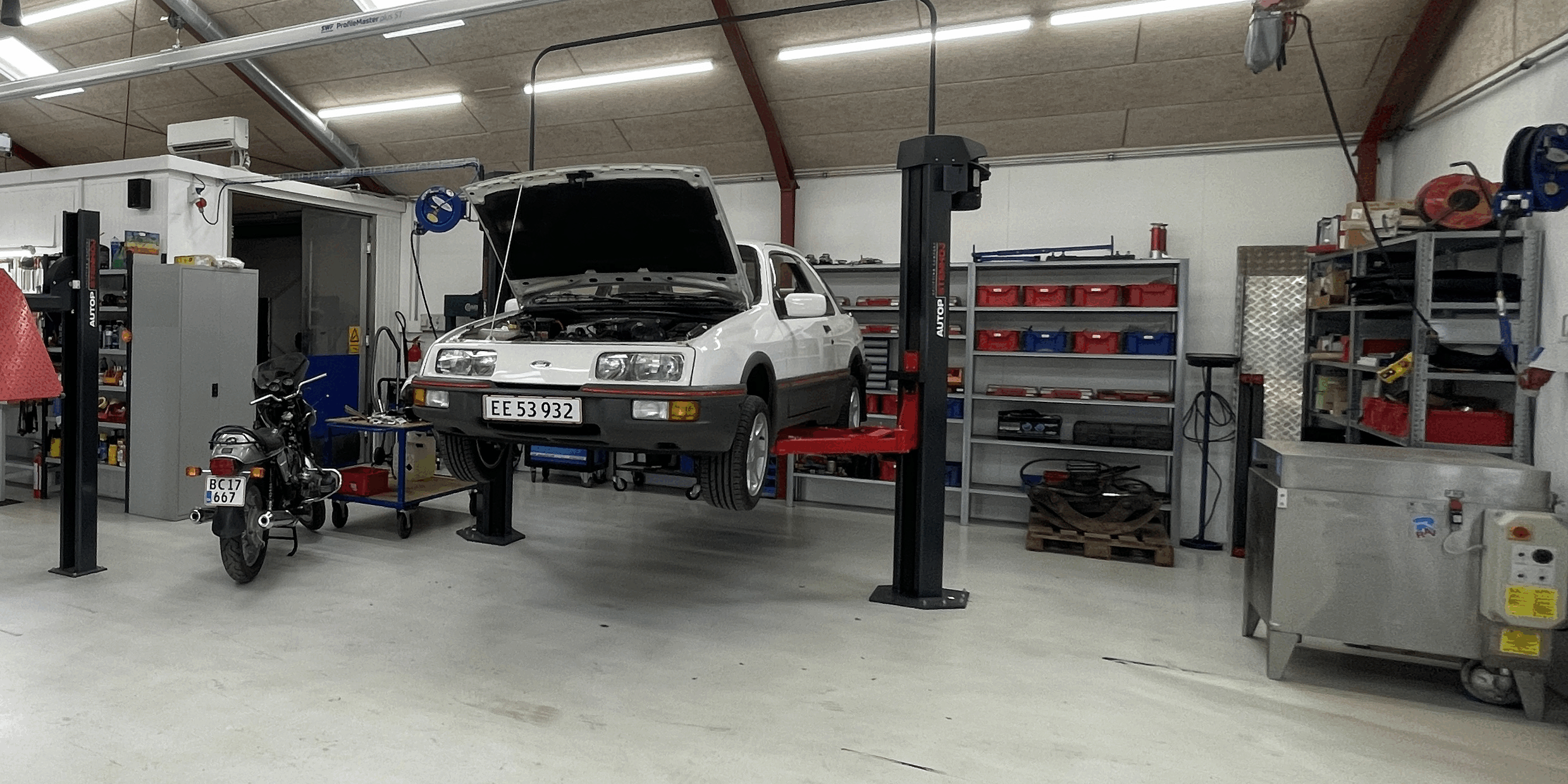 Der er mange forskellige biler, og på værkstedet kan man se de projekter, HP er i gang med.